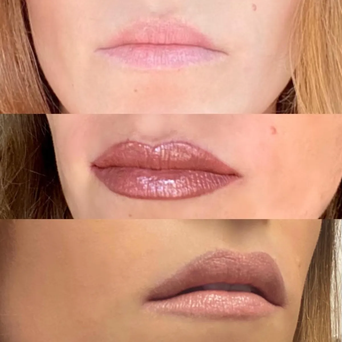 One of the best things about lip blushing is that the technique is a super soft pixilated approach that gives you a “tint” so lipsticks can be worn over your lip blushing! Also, PMU pigments are designed to fade gradually and naturally over time. This means you’re never stuck with a single shade for life. As your lips heal and as the years go by, the color softens, giving you the perfect base that can be refreshed or adjusted with a color boost every 12–18 months. Want to keep your current shade? We simply refresh it. Want to go a little lighter, deeper, or brighter? We can adjust the color at your touch-up or boost! Changing trends or just your personal style? Your lip blush can evolve with you.